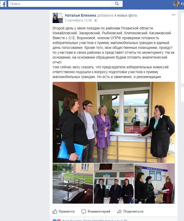 При этом Уполномоченный по правам человека Рязанской области Наталья Епихина 7 сентября 2017 года, накануне дня голосования, отрапортовала о готовности избирательных участков к приему маломобильных граждан: «Уже сейчас могу сказать, что председатели избирательных комиссий ответственно подошли к вопросу подготовки участков к приему маломобильных граждан...» По её мнению, около 850 из 1027 избирательных участков Рязанской области доступны для маломобильных граждан.